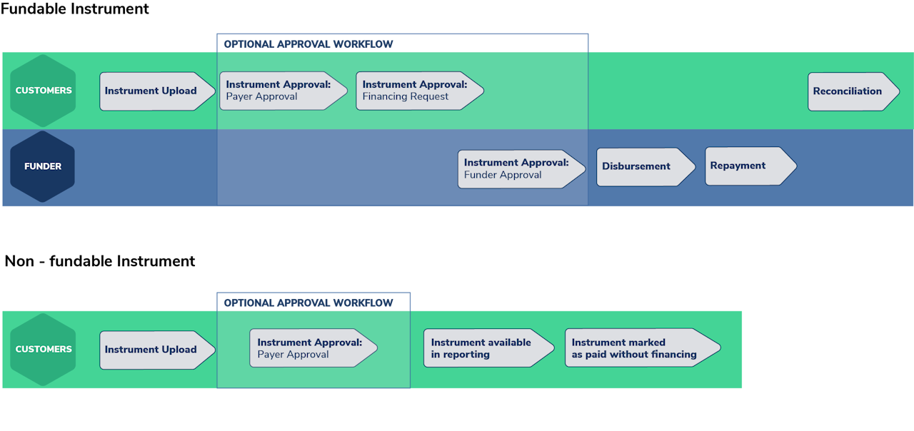A Payer Approval is the first step in the Instrument Approval Workflow and refers to the authorisation of payment for the instrument (i.e. confirmation that the invoice is valid and should be paid - and the Payer will pay the funder/seller on the agreed terms). It is an optional step that can be added as an approval when Funder sets up the Product and the Deal.
